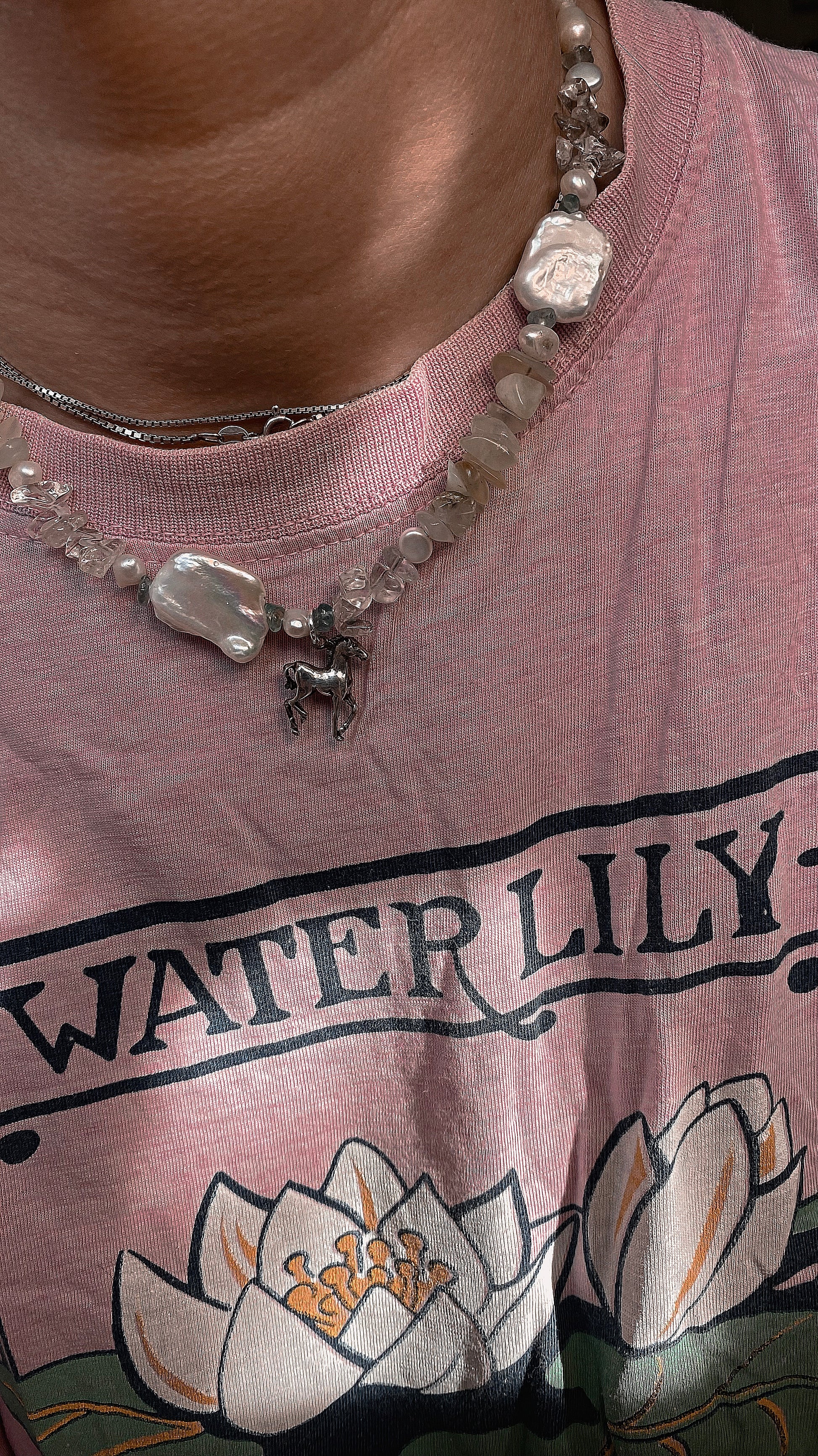 mermaid's pony, mini horse silver pendant on fresh water pearl and quartz variations