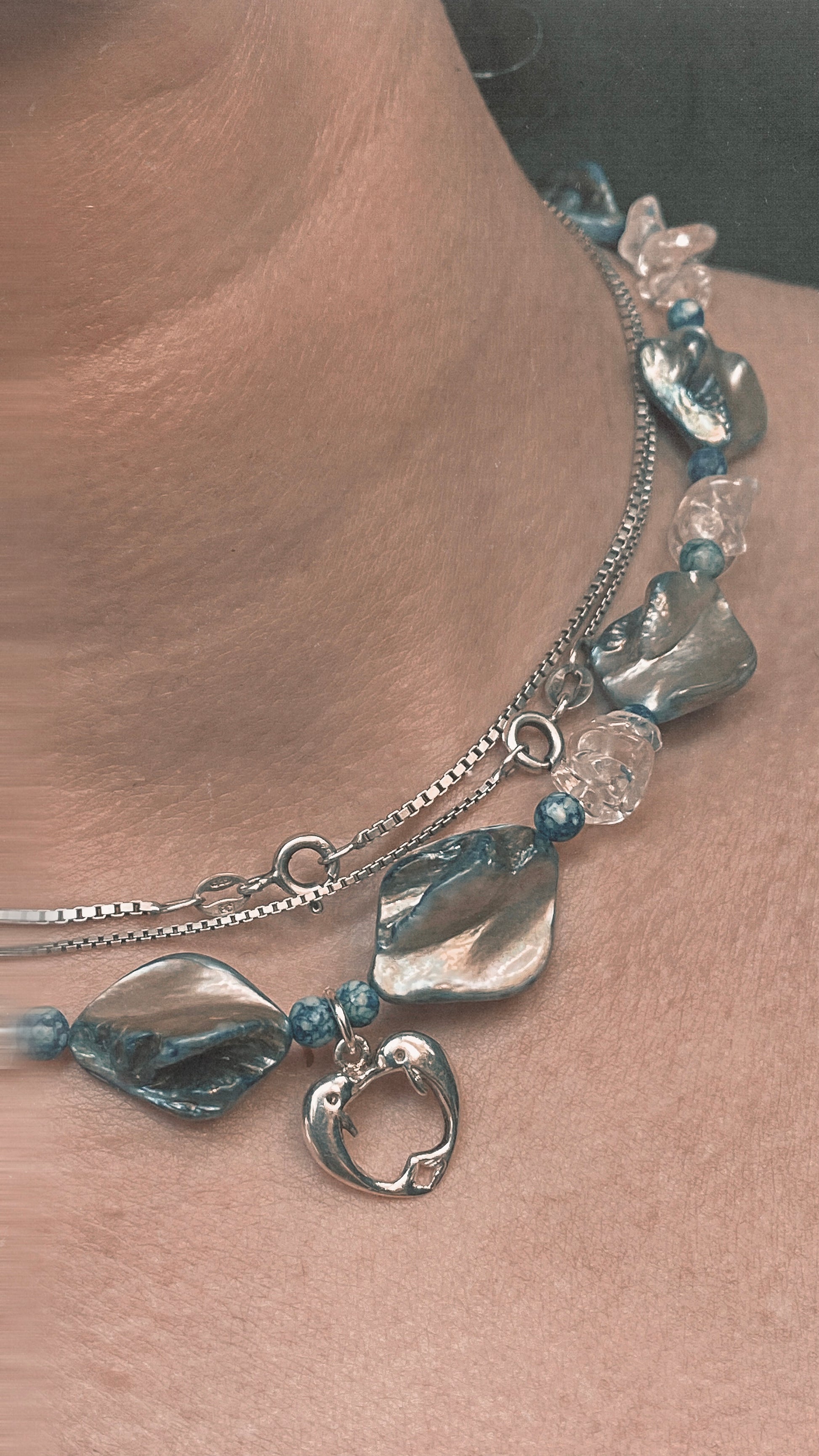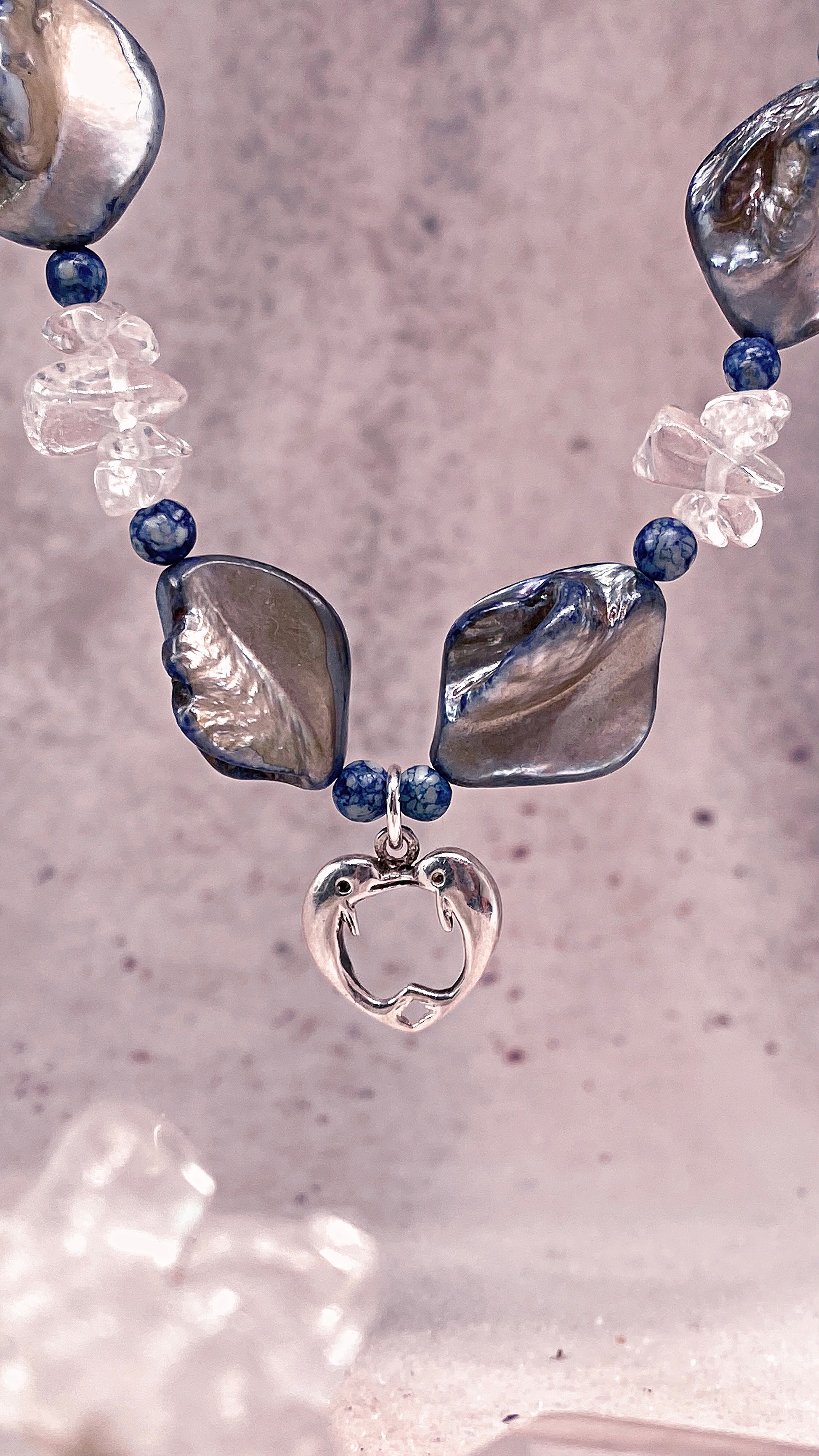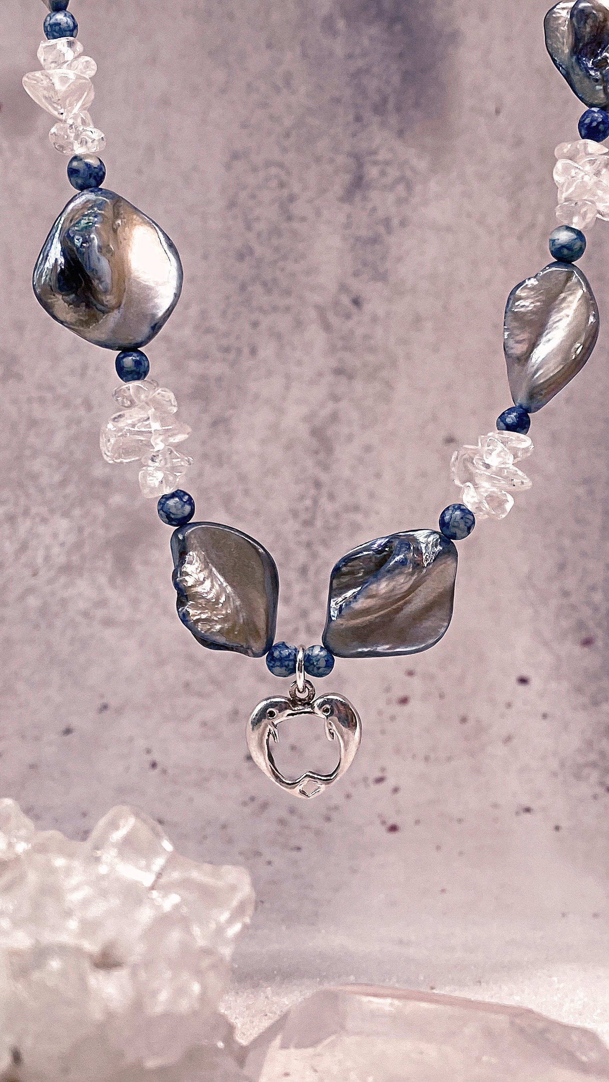 deep sea dolphin love with sodalite, quartz and seashell chunks silver fantasy mermaid