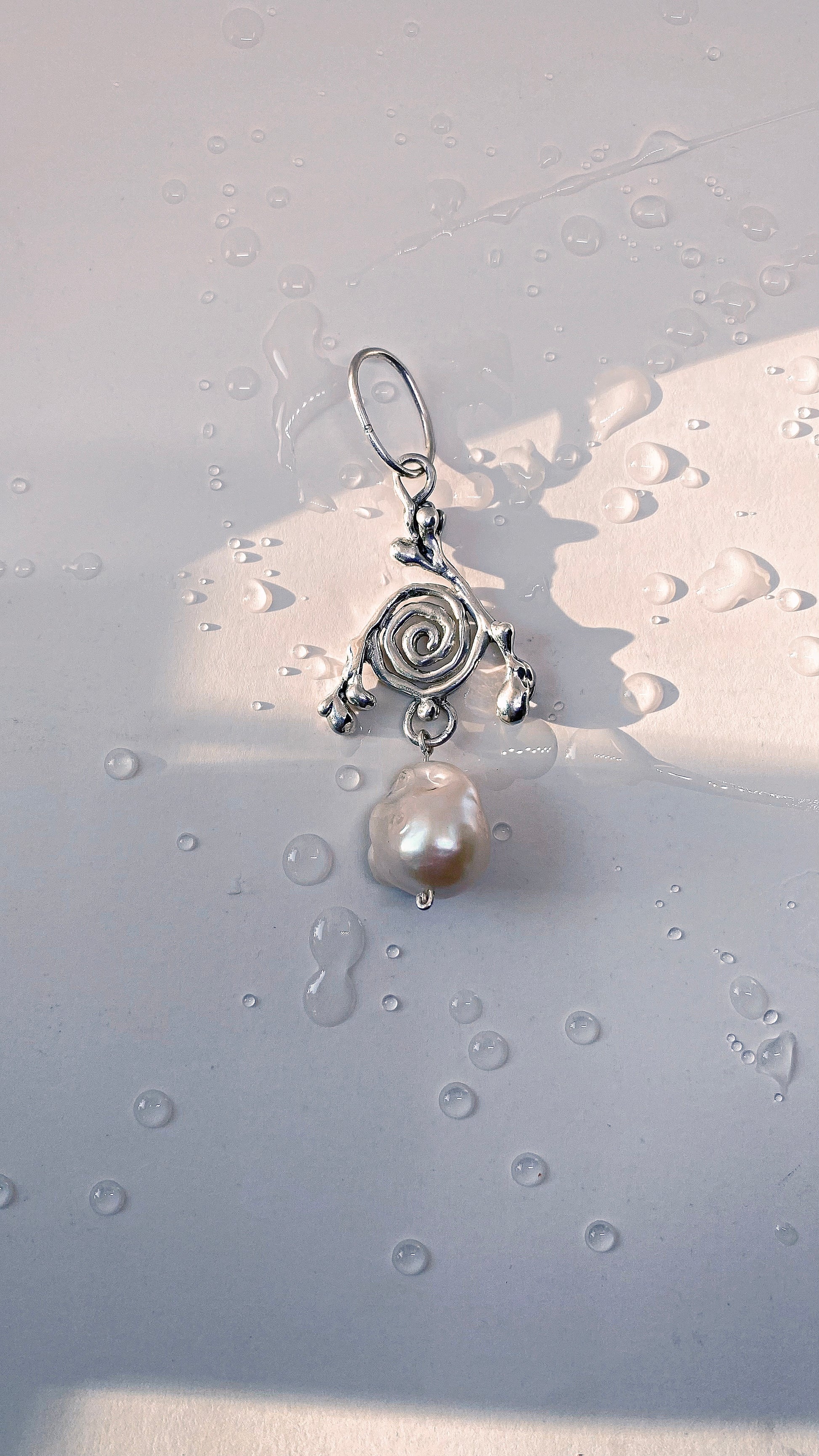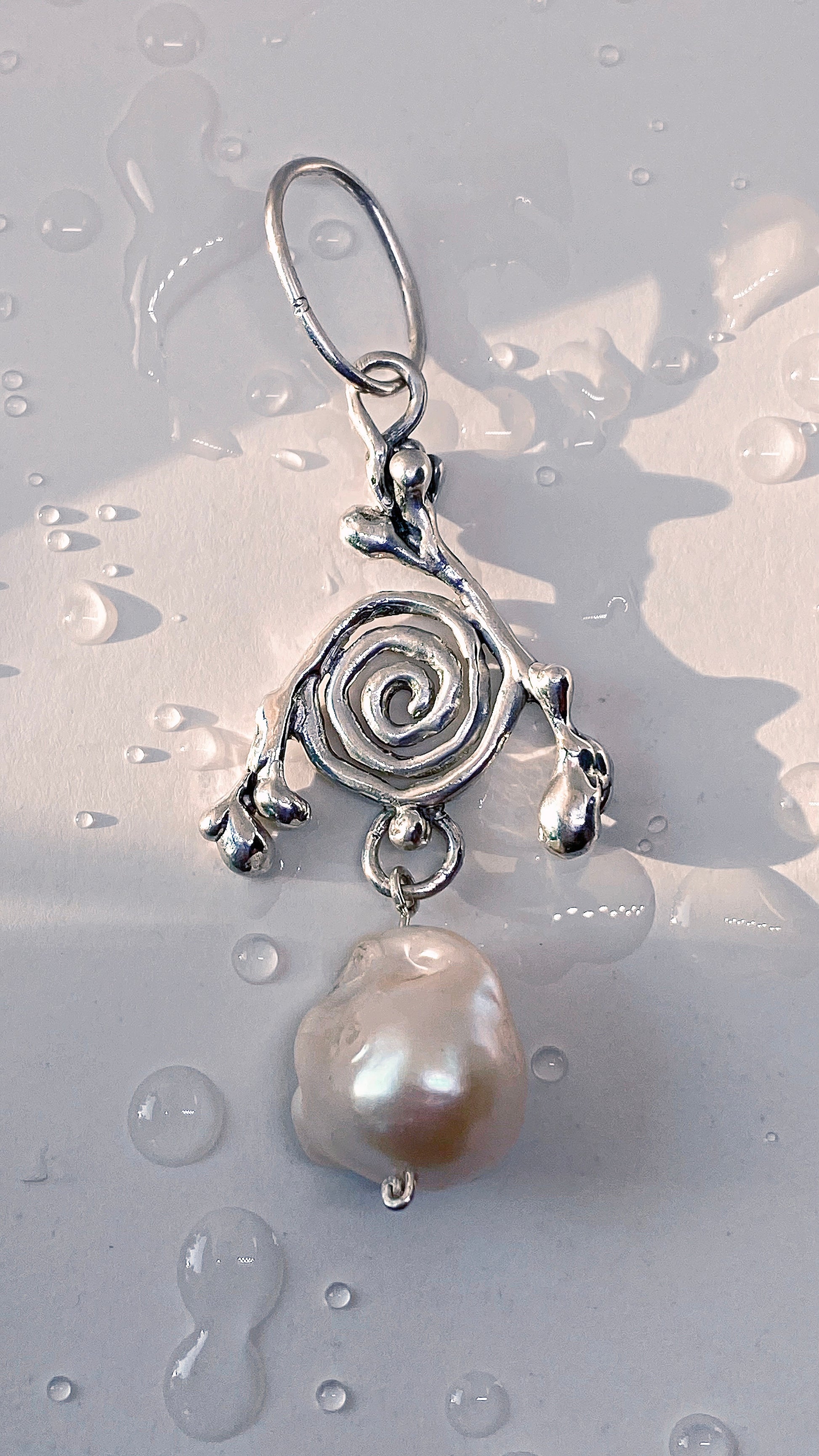᠅ sunken city ᠅ silver branch spiral with chunk baroque pearl