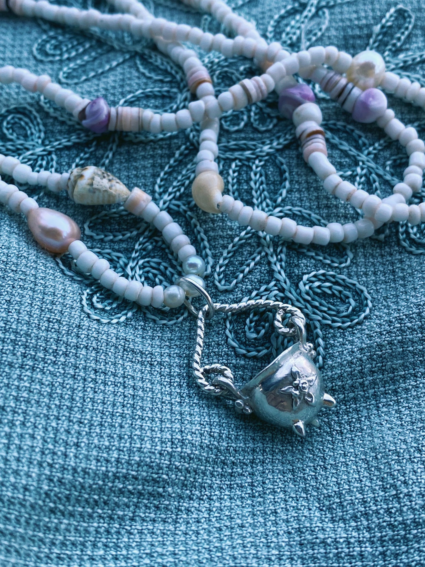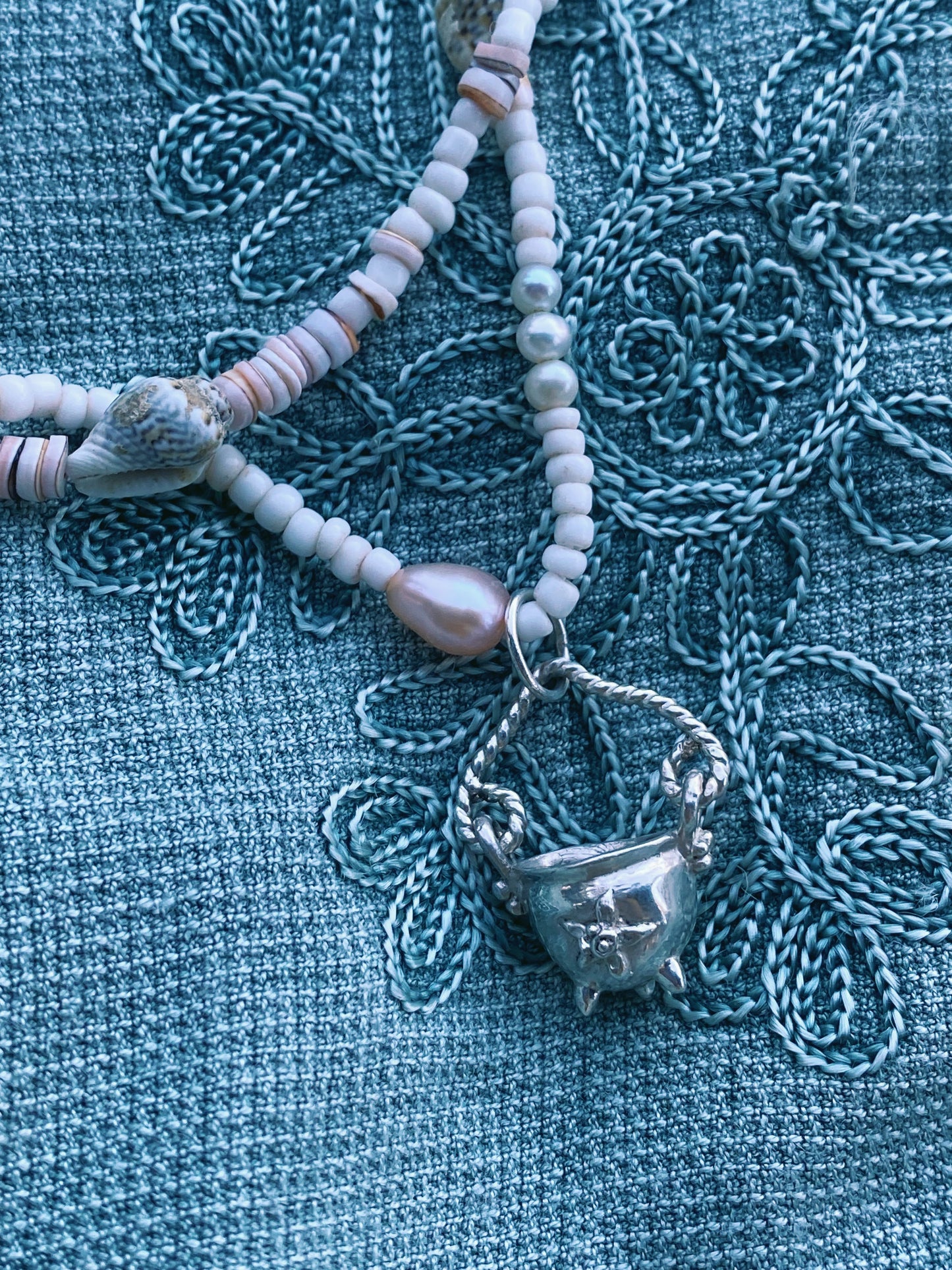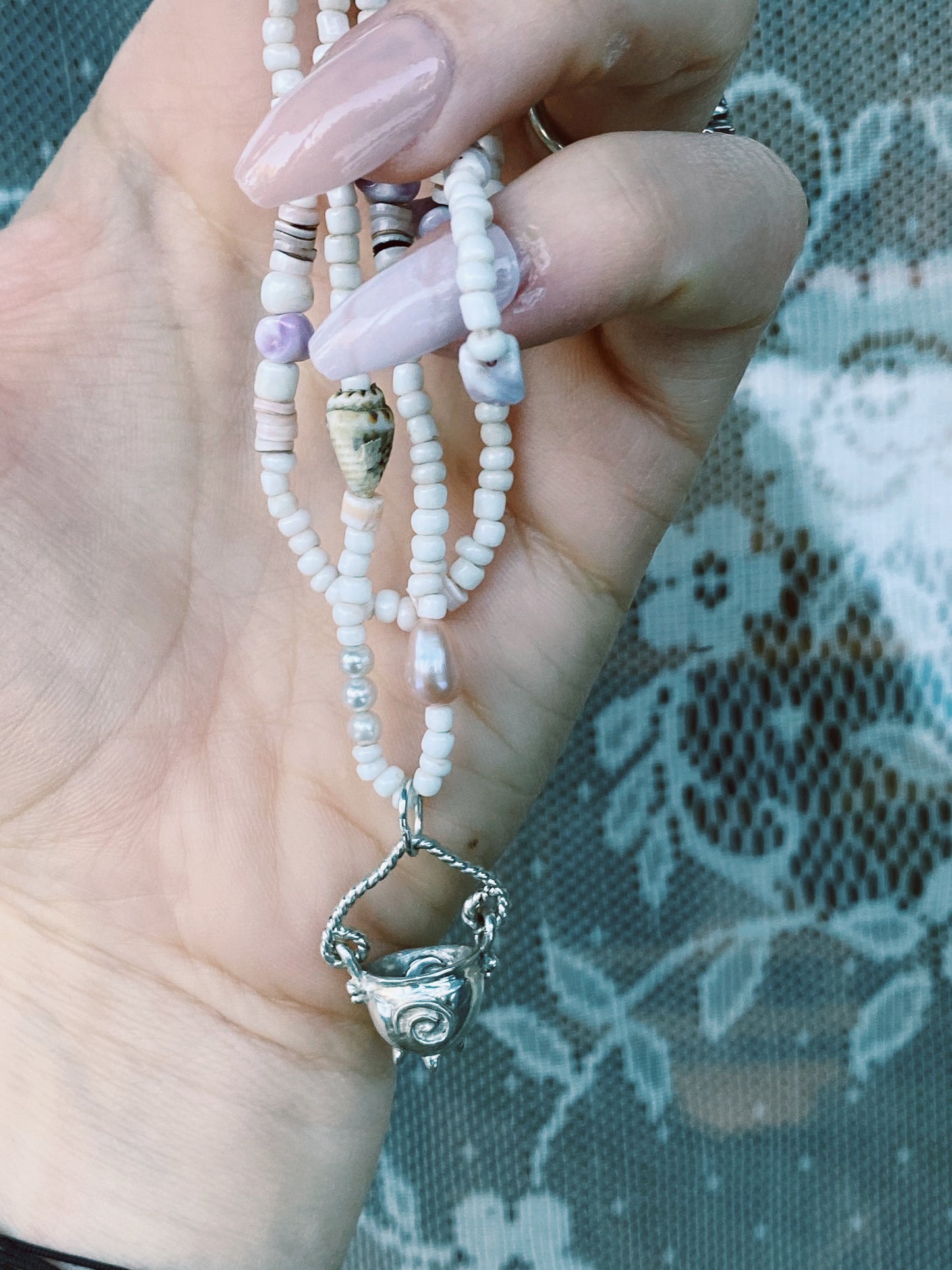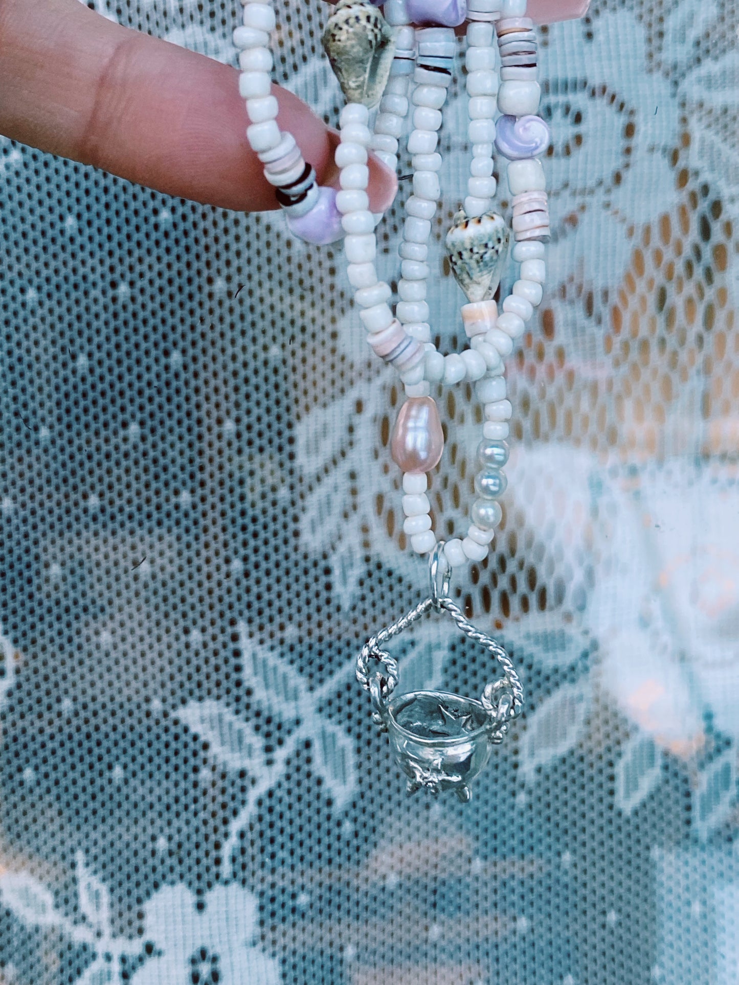 (reserved) shining sea // luminescent silver cauldron on beaded string